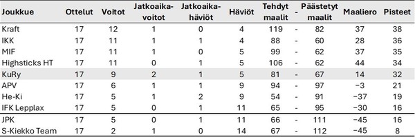 | 23.12.2025 10.00 | Rautaliigan sarjataulukossa tasainen kärki |
