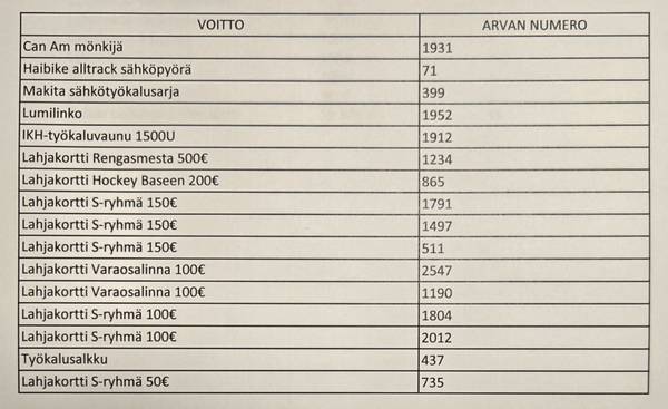 Arvonta on suoritettu. Voittoarpojen numerot ovat alla olevassa listassa. Otamme voittajiin yhteyttä henkilökohtaisesti.